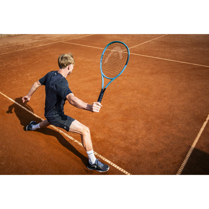 Com design azul vibrante, inspirado na icônica coleção de esqui de competição da HEAD, essa raquete também car rega a assinatura de atletas de elite como Coco Gauff e Lorenzo Musetti.